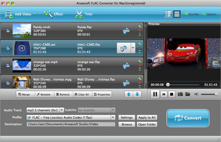 Aiseesoft FLAC Converter for Mac Программа для конвертирования файлов из AAC, AC3, AIFF, AMR, AU, FLAC, MP3, M4A, MP2, OGG, WAV, WMA в FLAC. Она так же умеет извлекать аудио-дорожки из видео-файлов и сохранять их в различных форматах в высоком качестве.