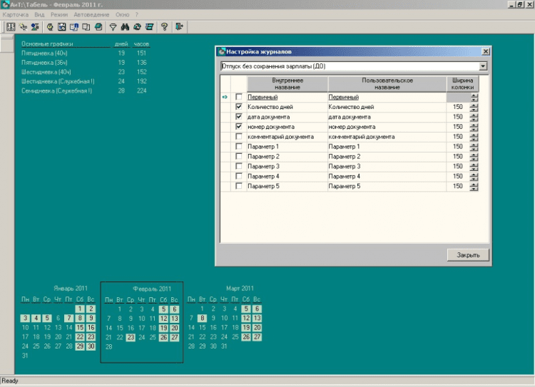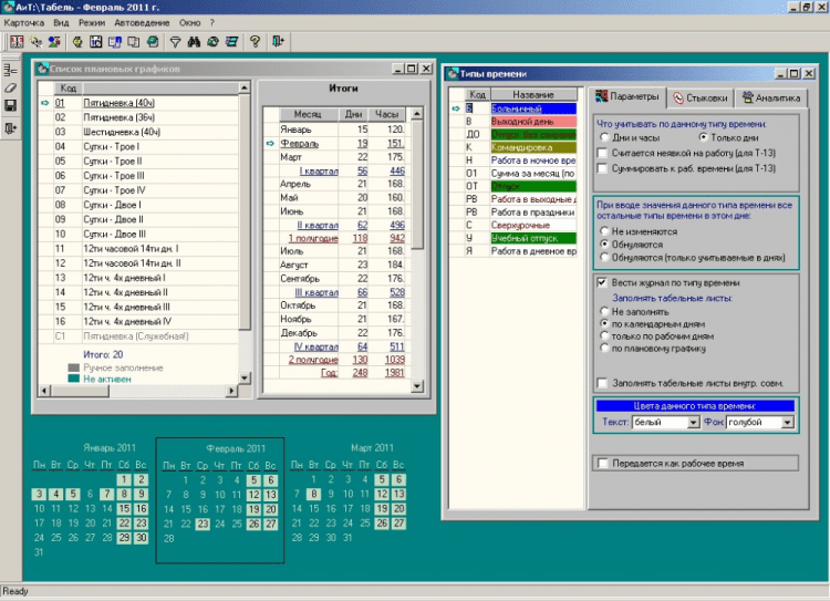 - В плановых графиках определяется плановое ко-личество табельного времени на календарную дату.