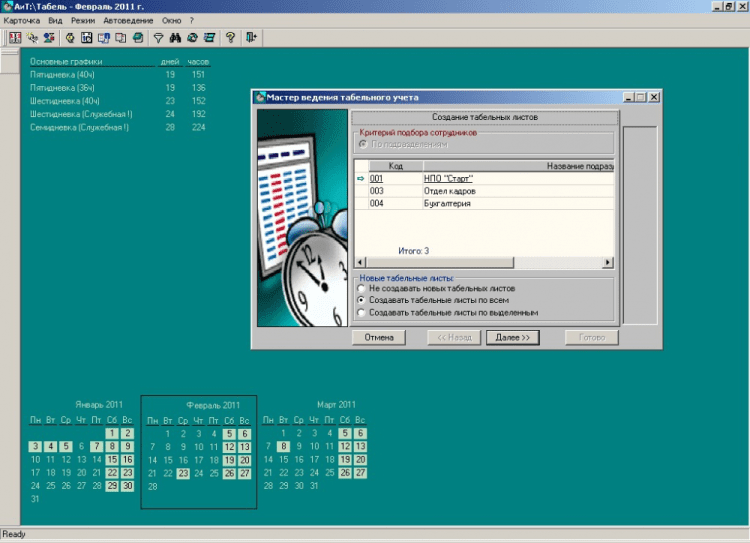 - Режим начисления зарплаты по данным из табельных листов полностью автоматизирован.
