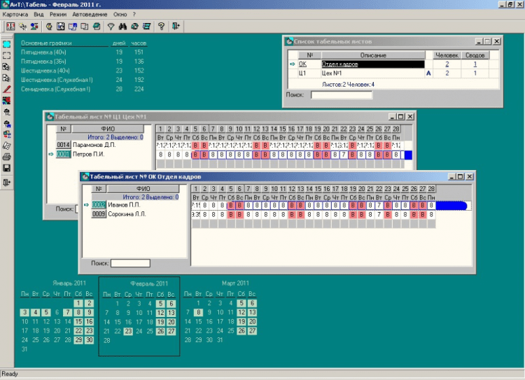 - Средства автоматического заполнения табельных листов позволяют обеспечить высокую скорость ввода данных при подробной детализации.