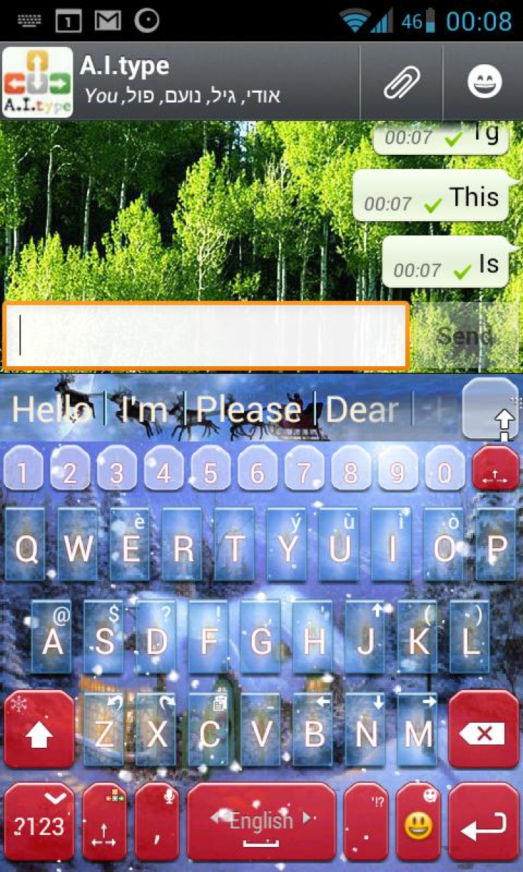 A.I.type Christmas live theme Красивая тема оформления для приложения ai.type Keyboard версии 1.9.8.5 или выше, выполненная в рождественском стиле. Программа автоматически воспроизводит всем известную песню "Jingle Bells" во время печати.