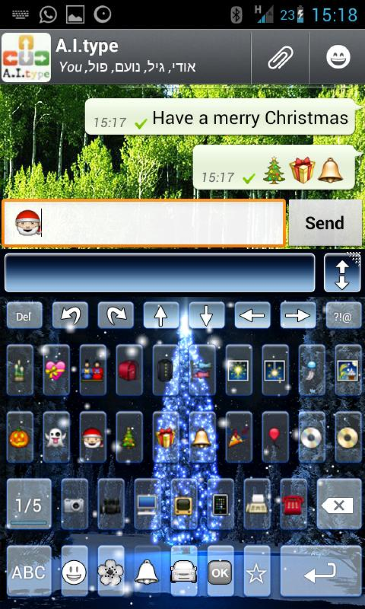 A.I.type Xmas 2012 live theme Красочная тема оформления для приложения A.I.type Keyboard версии 1.9.8.5 или выше, выполненная в рождественском стиле. Эта тема украшена светящейся рождественской ёлкой, а так же красиво падающим снегом.