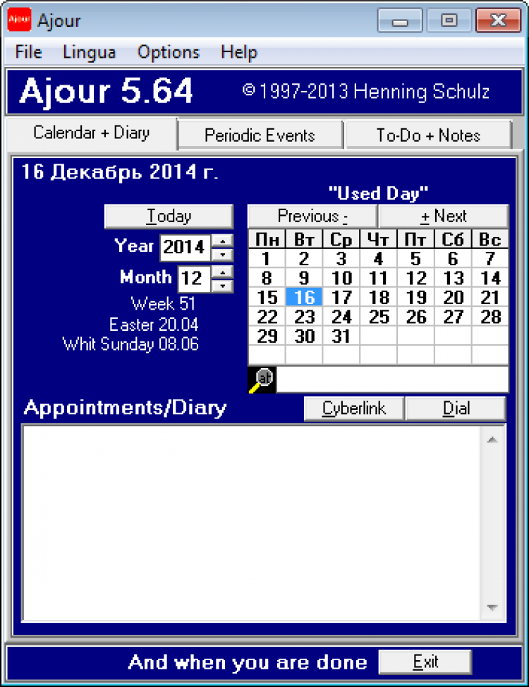 Ajour - это удобная программа, сочетающая в себе функции ежедневника, планировщика и менеджера задач. Она обладает компактным, интуитивно понятным интерфейсом, который к тому же переведен на несколько языков, включая русский.