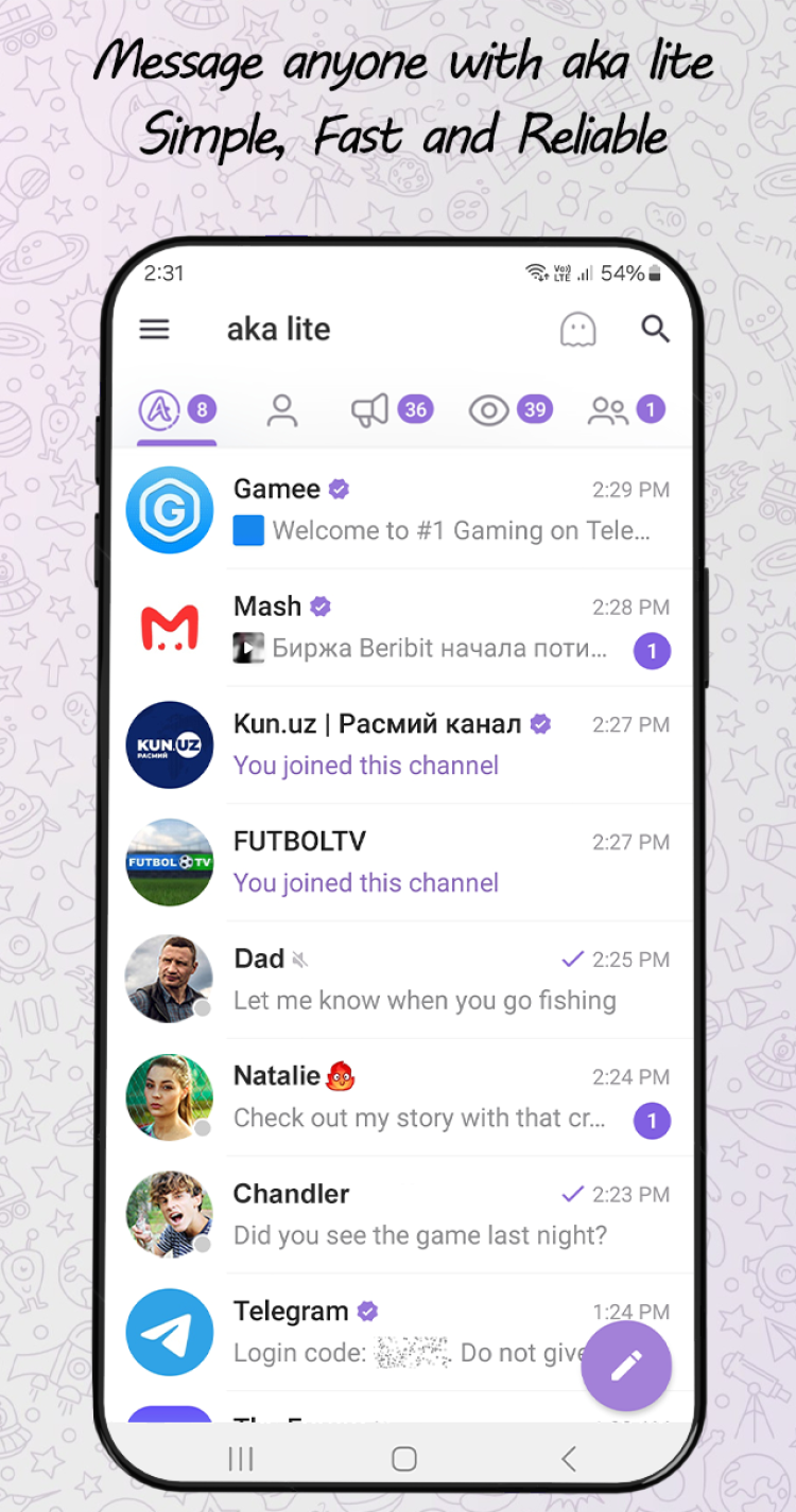 aka Messenger lite — это отлично оптимизированная и эффективная версия популярного приложения aka Messenger, разработанная специально для сравнительно старых и медленных устройств на Android. Это идеальный выбор для тех, кому нужен легкий и экономящий данные инструмент для общения, который не жертвует при этом уровнем защиты. Самым большим преимуществом приложения является использование Telegram API, что обеспечивает непревзойденный уровень защиты пользовательских данных. Последняя версия aka Messenger lite поддерживает все функции Telegram, к примеру, секретные чаты, которые защищены 3 методами шифрования мирового класса, что делает ваши сообщения и любые отправленные файлы недоступными для хакеров и третьих лиц.