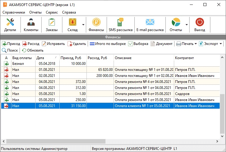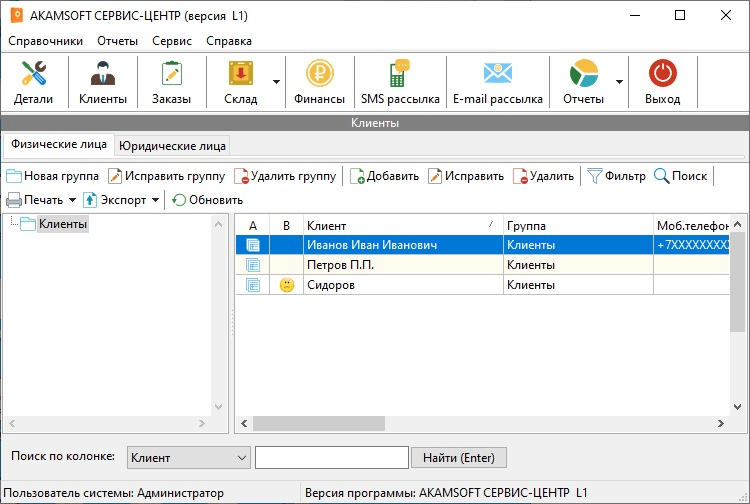 Функции программы AKAMSOFT СЕРВИС-ЦЕНТР: