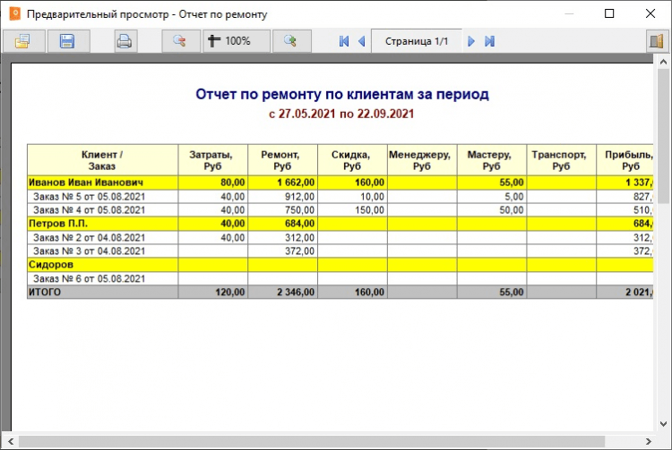- Формирование отчетов по выполненным работам, расходу средств, движению комплектующих на складе за любой период времени: день, неделя, месяц, год. Это позволяет оценить эффективность бизнеса и внести корректировки в работу центра для повышения производительности труда.