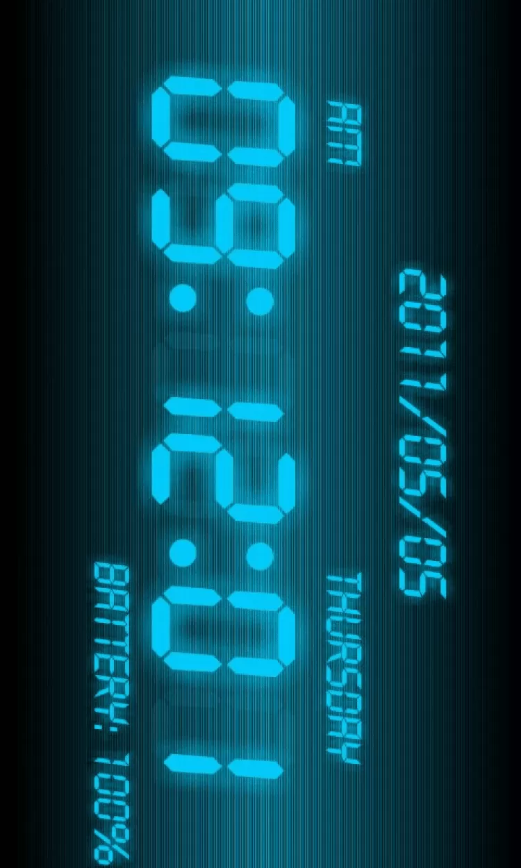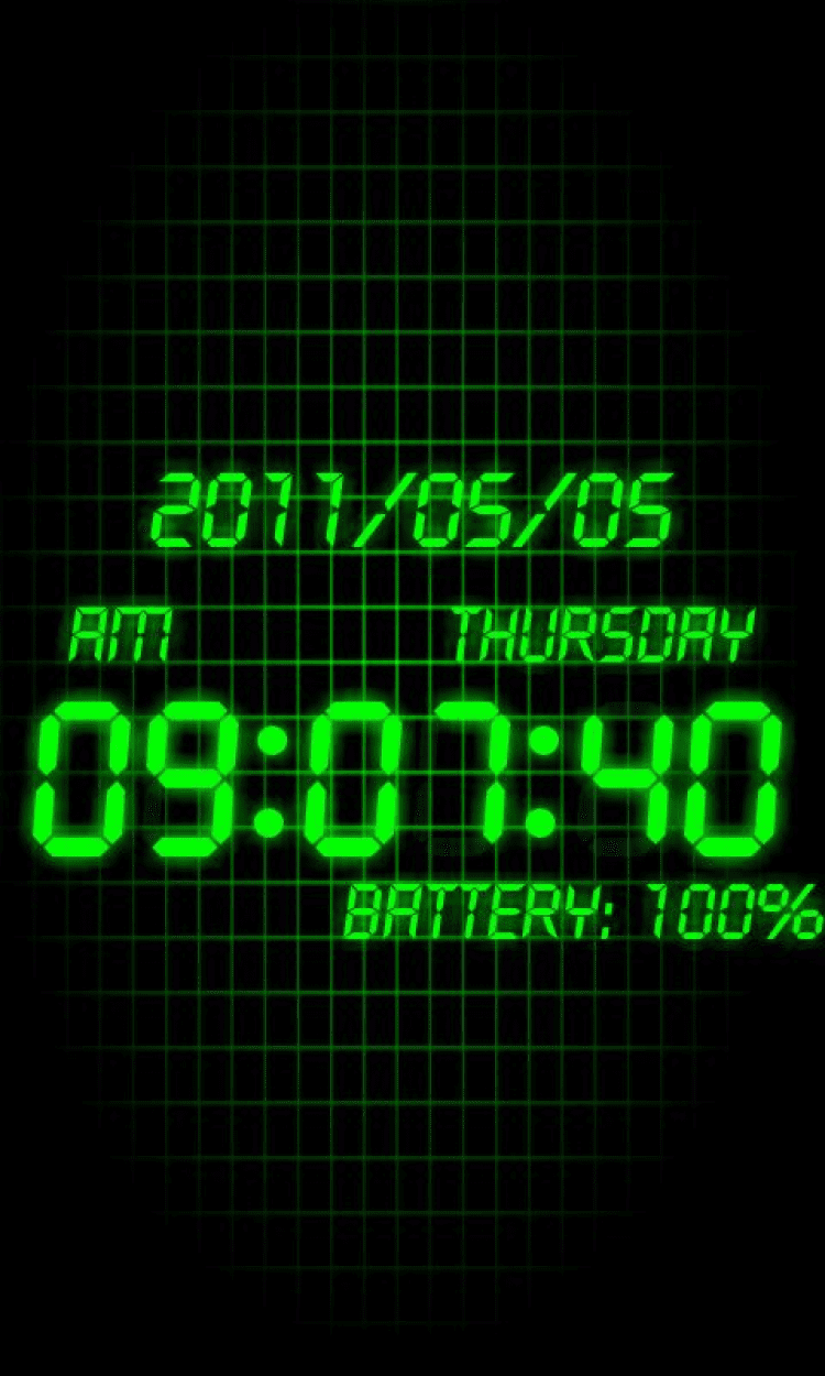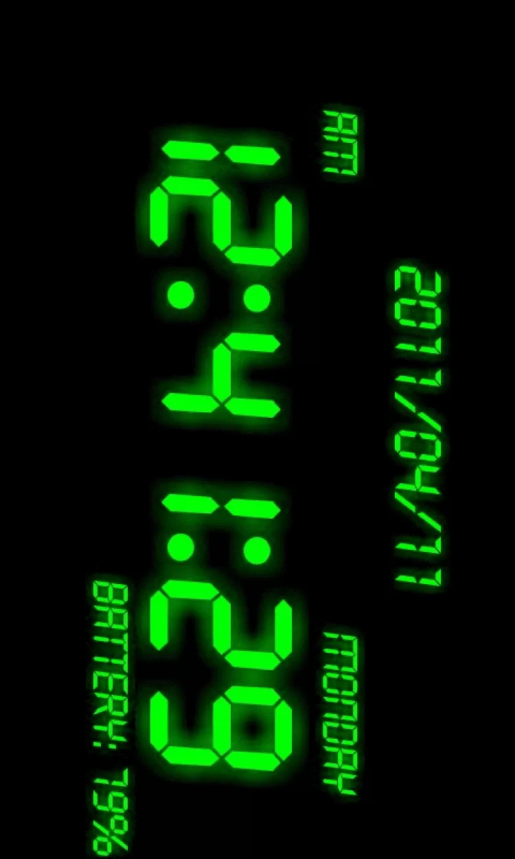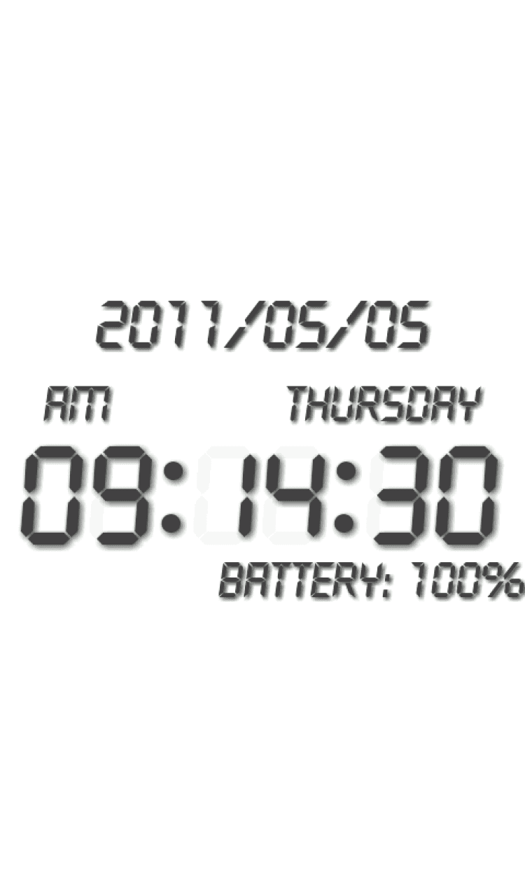 Battery Clock Удобные электронные часы для вашего мобильного устройства. Эти часы отображают не только время, но и дату, день недели и уровень заряда аккумулятора. Вы можете выбрать цвет фона и шрифта, а так же расположение в горизонтальном или вертикальном варианте.