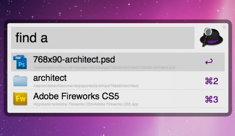 Alfred Утилита, котороая предоставляет пользователям быстрый доступ к приложениям и файлам. Помимо поиска и запуска приложений Alfred позволяет искать файлы на компьютере пользователя, а также информацию в сети интернет.