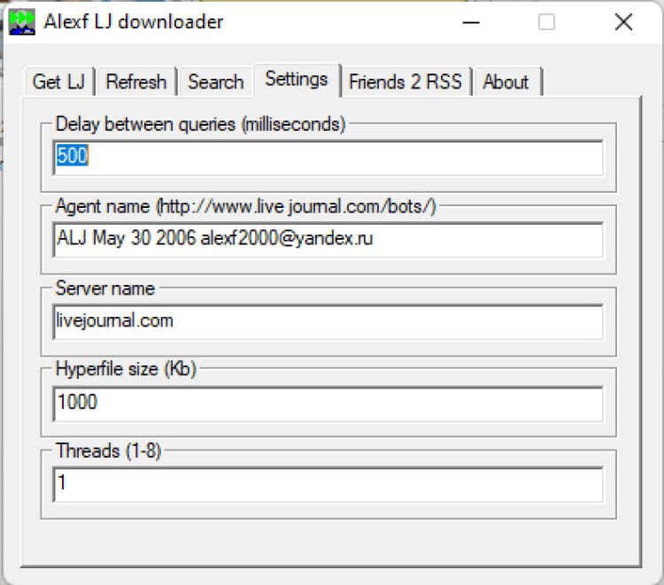 ALJ - это программа позволяет скачивать и сохранять журналы в виде одного или нескольких html-файлов. Обязательно должен быть включен LJ автологин в Internet Explorer для того, чтобы скачать закрытые записи. Поддерживает http прокси. Журнал пользователя или комьюнити скачивается целиком со всеми комментариями, после чего для удобства чтения создаётся один или несколько компактных "гиперфайлов" с содержимым журнала в хронологическом порядке. Также поддерживается докачивание новых записей и обновление уже скачанных. Есть поиск по скачанным журналам на русском и английском языке. Имеется возможность загрузить картинки, ссылки на которые присутствуют в каком-либо скачанном журнале. Отличия от других существующих программ: скачивание журнала в несколько потоков, скачивание "свёрнутых" и многостраничных комментариев.