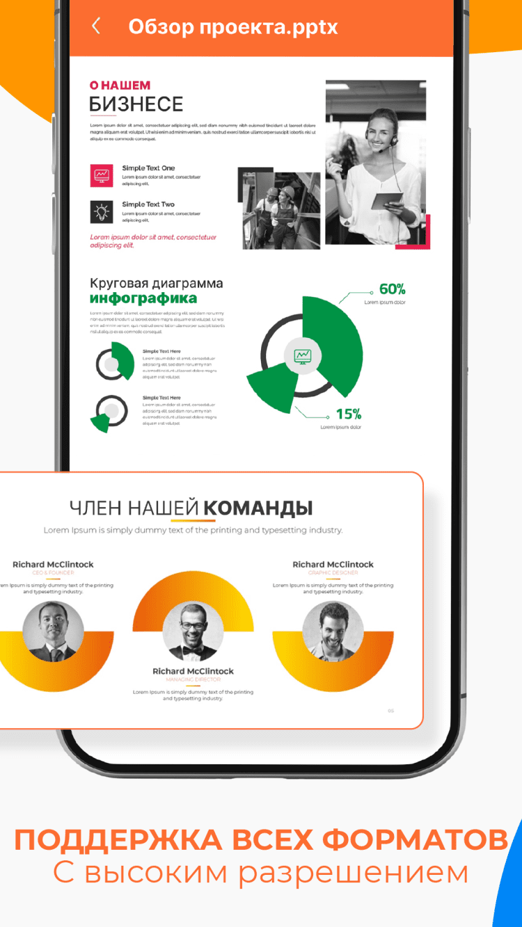 Как подсказывает название приложения, оно предназначено для просмотра любых типов документов. Речь идет не только о простых текстовых файлах, но и таблицах Excel, презентациях PowerPoint и других распространенных форматах. Все документы открываются в том же виде, в каком они отображаются на экране компьютера. Важно, что в отличие от других просмотрщиков документов, это приложение не требует обязательного доступа в Интернет. Это позволяет свободно работать с нужными файлами в любом месте, в любое время.