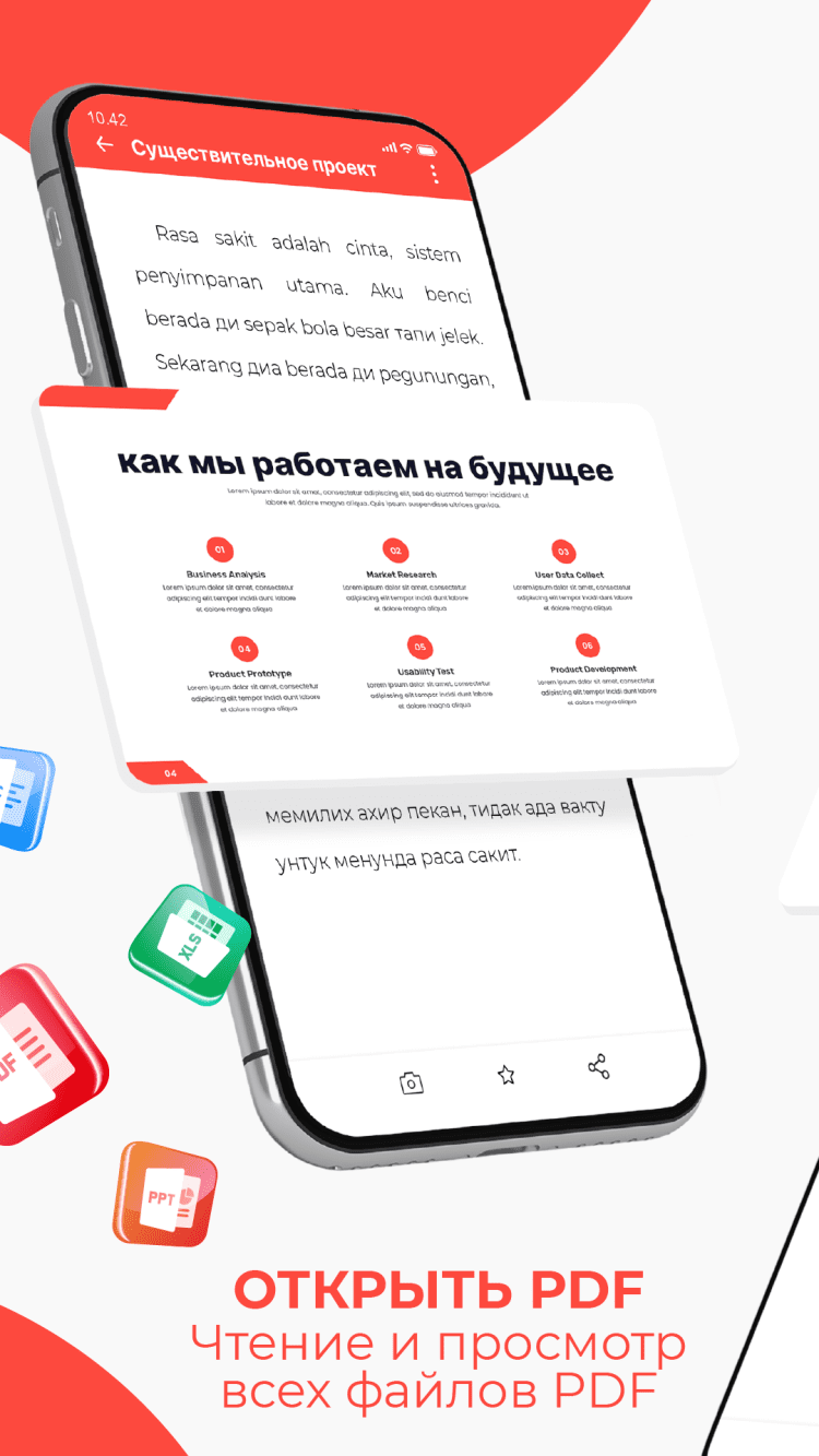 - чтение файлов PDF, в том числе и из сторонних приложений;