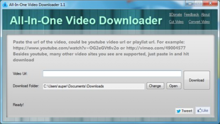 Поможет скачать понравившиеся видеоролики с большинства популярных ресурсов. К примеру, программа работает с такими сайтами, как YouTube, Vimeo и Dailymotion. Использовать программу очень просто. Для этого, просто укажите папку, в которую необходимо сохранить видео, а затем вставьте ссылку на желаемый видеоролик.