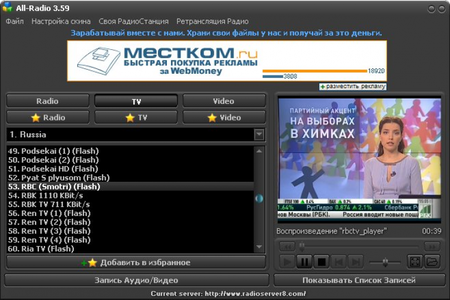 All-Radio All-Radio - это многофункциональная программа для прослушивания радио через интернет, а также просмотра ТВ и видео.