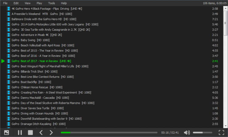 - Поддержка drag-and-drop. Перетащите файлы в окно плеера для начала воспроизведения;