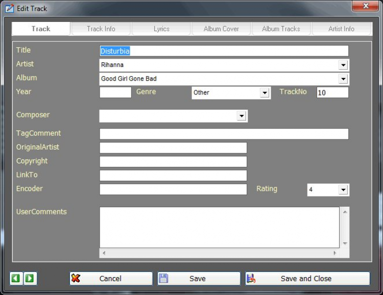 AllMySongs Database - это каталогизатор музыки, который поможет управлять коллекций музыкальных файлов и аудио дисков. Он поддерживает большое количество музыкальных форматов, позволяет проводить поиск по различным атрибутам, умеет самостоятельно искать в сети обложки альбомов, фотографии и биографии исполнителей и другу информацию.