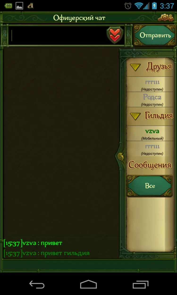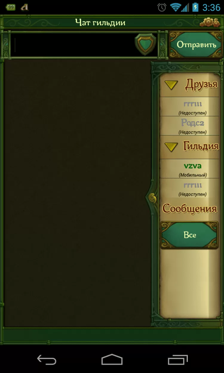 Заходите в приложение, используя логин и пароль от своей учетной записи в игре «Аллоды Онлайн». Где бы вы ни были, вы будете на связи со своими товарищами из Сарнаута. Узнайте о том, как прошел гильдейский рейд и кто из друзей получил новый уровень: переключайтесь между окнами чата, общайтесь со всей компанией или выбирайте одного собеседника. Теперь все события Сарнаута - на расстоянии одного касания.