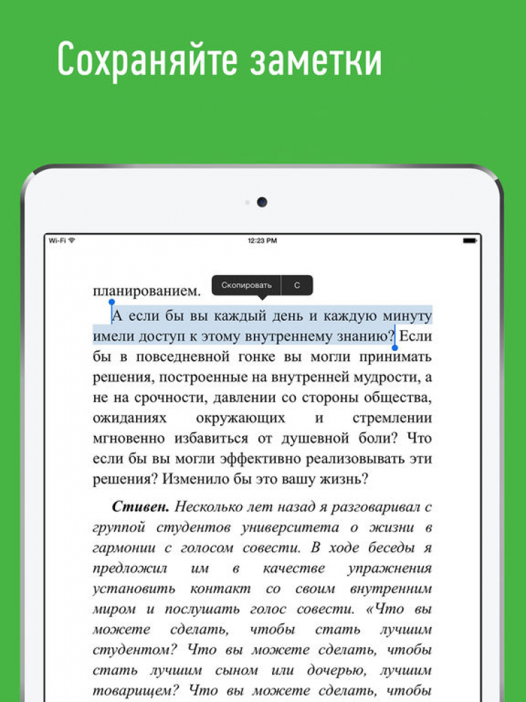 В приложении есть бесплатная книга, на примере которой можно оценить качество текста, верстки и удобство чтения.