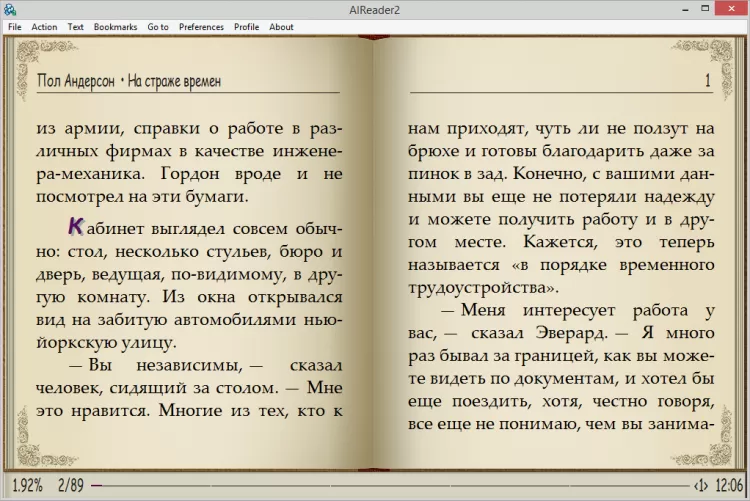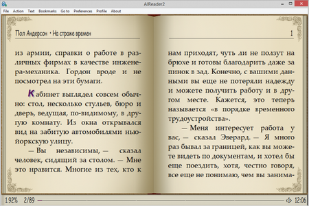 AlReader - это программа, с помощью которой вы сможете читать электронные книги на компьютере. Она поддерживает самые разные книжные форматы, включая: fb2, fbz, txt, epub (без DRM), html, doc, docx, odt, rtf, mobi, prc (PalmDoc), tcr. И в добавок, позволяет открывать и читать книги прямо из ZIP и GZ архивов, не распаковывая их.