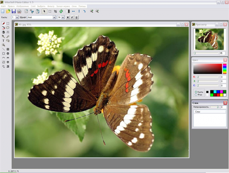 Altarsoft Photo Editor - это графический редактор с возможностью захвата изображения на экране. Поддерживает слои, применение различных фильтров. Позволяет рисовать основные графические примитивы: линии, прямоугольники, эллипсы. Опции редактирования позволяют регулировать яркость, контраст, насыщенность, удалять эффект красных глаз. Можно менять размер изображения и холста. Функция захвата экрана, позволяет снять скриншоты со всего экрана, активного приложения или региона.
