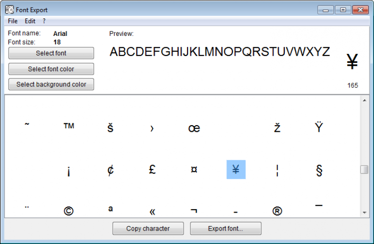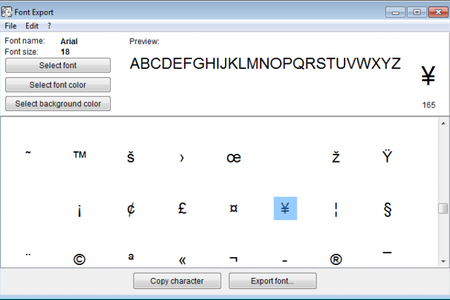 Alternate Font Export - это бесплатная программа, которая позволяет сохранить выбранный шрифт на вашем компьютере в виде изображения в формате BMP, JPG и GIF, или скопировать отдельный символ в буфер обмена.