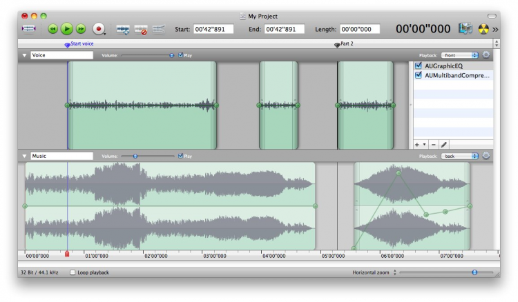Amadeus Pro Удобный мультитрековый аудиоредактор/рекордер с поддержкой MP3 для Mac. Это приложение обладает встроенной возможностью уменьшения шума и восстановления звука, позволяет конвертировать файлы как по одному, так и группами, а так же поддерживает большое количество форматов, например AIFF, Mp3, Mp4, Ogg Vorbis, FLAC, QuickTime, Apple CAF, и тп.
