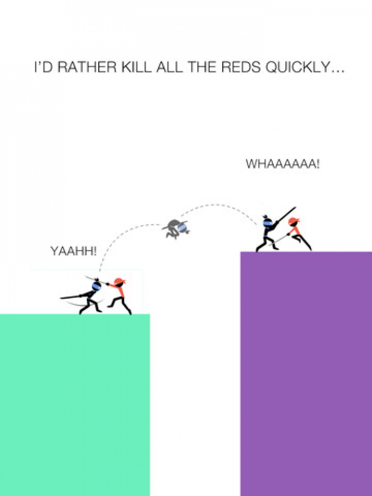 Amazing Ninja Увлекательная игра, в которой вам предстоит управлять смертельно опасным ниндзя. Спасайте синих ниндзя и убивайте красных, на своем пути минуя все препятствия.