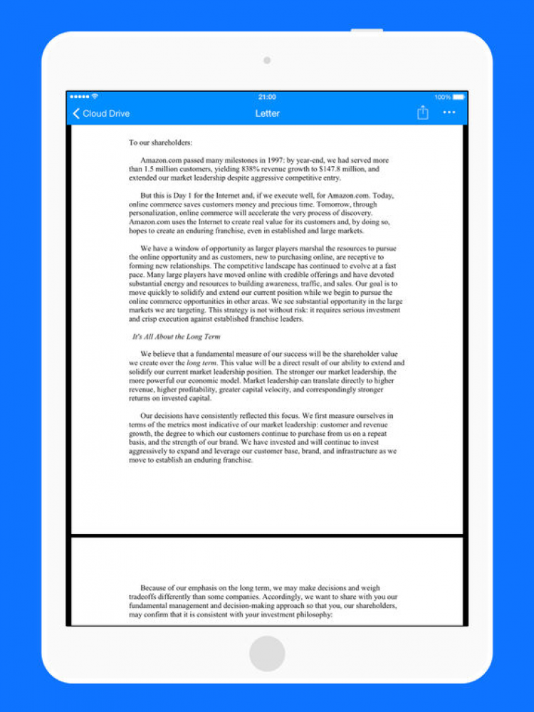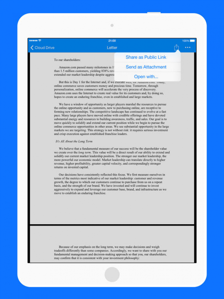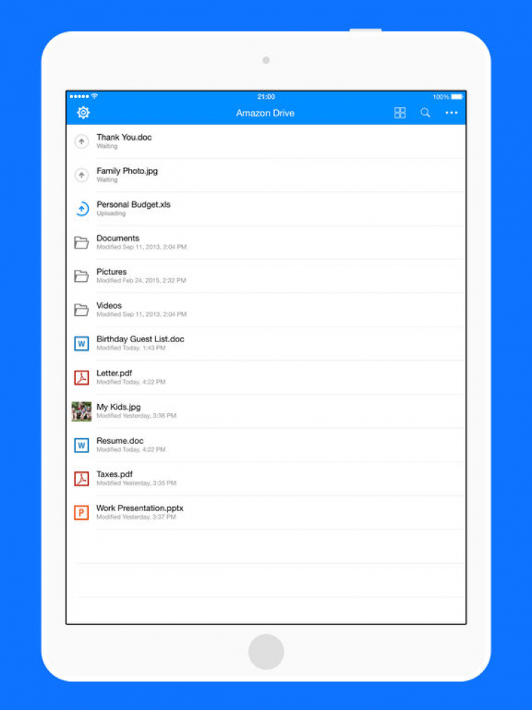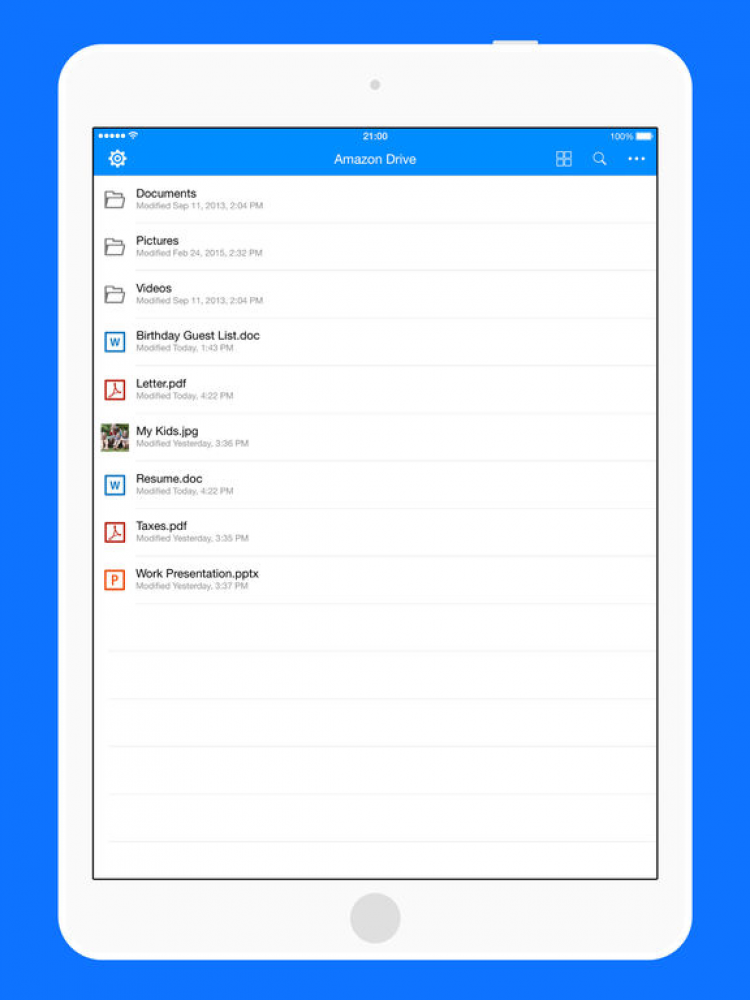 Amazon Drive — это простая в использовании программа, которая поможет вам управлять файлами, загруженными на облачное хранилище от Amazon, прямо со своего iPhone, iPad или iPod Touch.