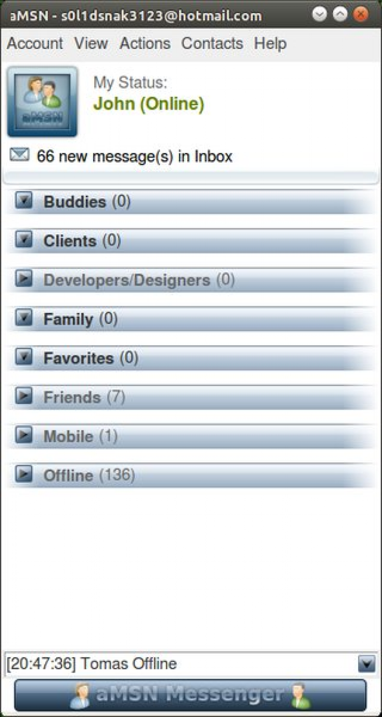aMSN Хорошая альтернатива Microsoft Messenger для Linux, с поддрежкой веб-камеры. В ней добавлены такие функции как: уведомление о событиях, конференц-связь и автосмена статуса при долго отсутствии. Так же вы сможете передавать файлы и сортировать контакты по группам.