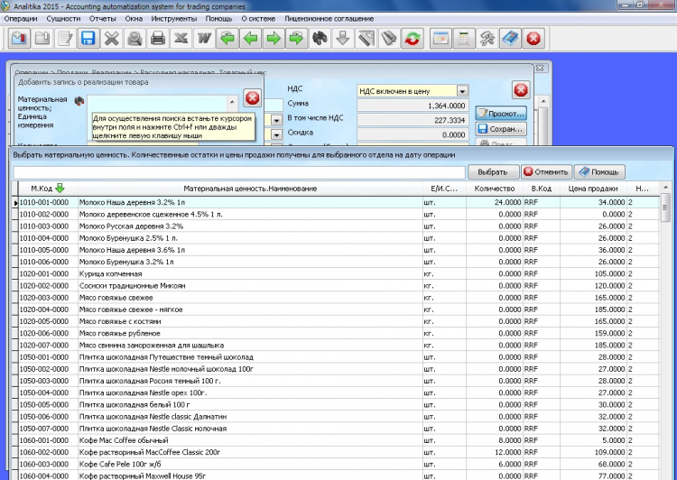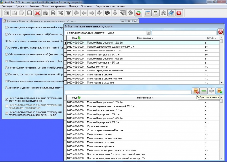ANALITIKA 2015 NET ANALITIKA 2015 NET - Программный продукт для автоматизации аналитического и управленческого учета финансово-хозяйственной деятельности в торговой компании. Автоматизация ввода продаж, покупок, перемещений товаров со сканером штрих-кодов. Учет товаров в нескольких единицах измерения одновременно. А именно, покупать товар можно в одной единице измерения (коробка, упаковка, и т.д.), а продавать - в другой единице измерения (шт. мл., и т.д.) Расчет соответствия между различными единицами измерения происходит автоматически согласно введенным коэффициентам для каждого товара. Импорт наименований товаров и услуг, цен продажи, первоначальных остатков, операций продаж, покупок, перемещений из Microsoft Excel файла. Получение отчетов как в собственной среде программы, так и непосредственно в MS Excel и MS Word. Консолидация данных филиалов компании в одну базу данных на уровне операций для получения целостной и обобщенной базы данных финансово-хозяйственной деательности компании.