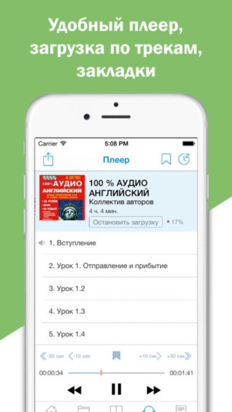 - Удобный аудиоплеер для прослушивания выбранных книг