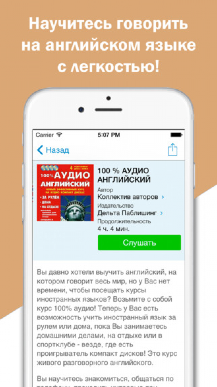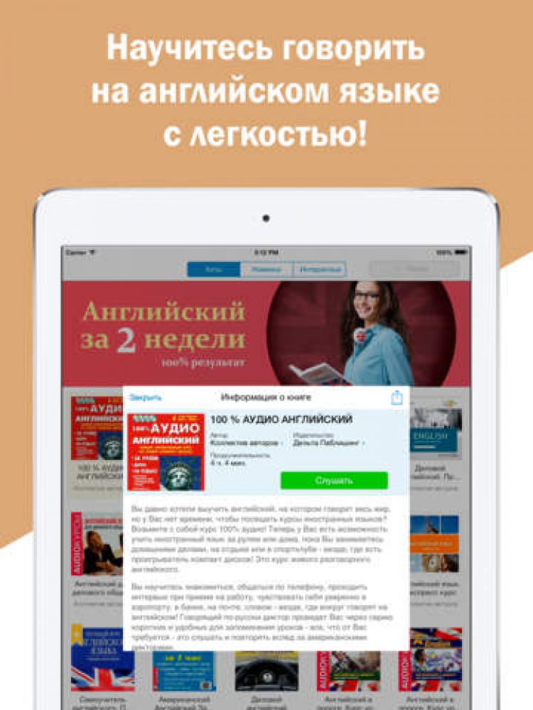 - Каждая аудиокнига имеет подробное описание, благодаря которому Вы сможете подобрать материалы, соответствующие Вашему уровню знаний