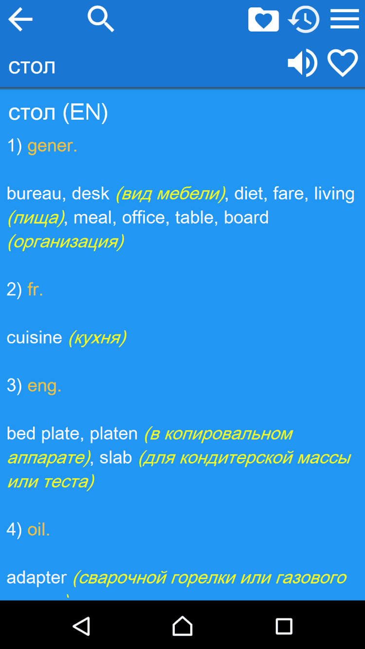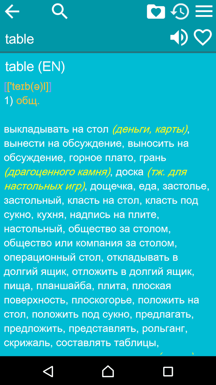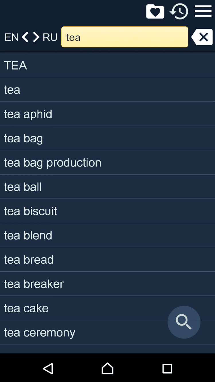 Англо-русский словарь - Бесплатный англо-русский и русско-английский словарь, который будет у вас всегда под рукой. В числе особенностей программы автоматическое сохранение истории запросов и возможность добавить особо важные слова в список избранного.
