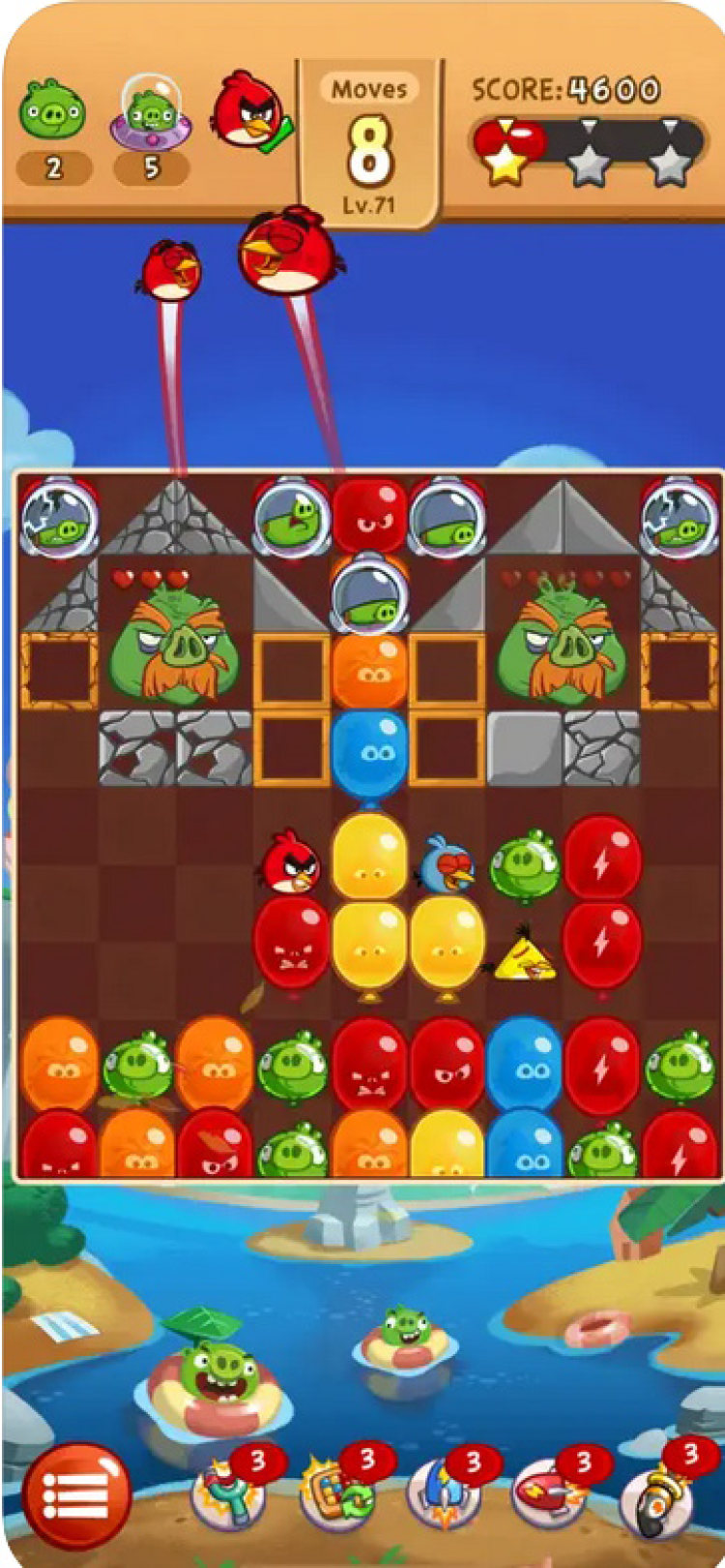 Angry Birds Blast для iOS — это отличная игра для любителей головоломок и фанатов Angry Birds. Здесь, вы будете спасать любимых персонажей из ловушки коварных свиней, лопая группы одноцветных шариков.