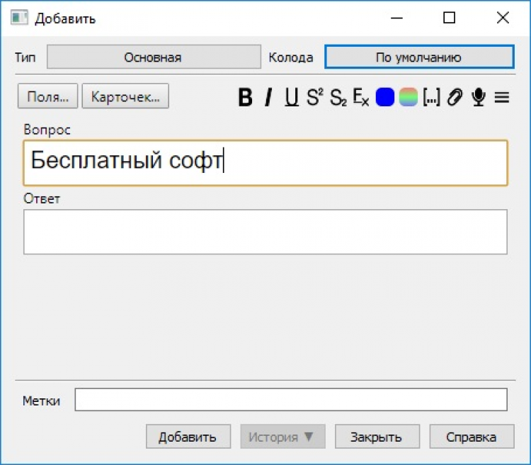 Используя Anki, вы сможете создавать удобные карточки с текстом, которые помогут запомнить любую информацию максимально быстро. Для этого, сначала напишите задание или вопрос, а затем, в соответствующем поле, верный ответ. Во время обучения, верный ответ не будет виден сразу и вы сможете подумать и попытаться вспомнить его самостоятельно. Повторяйте необходимый материал в удобное время.