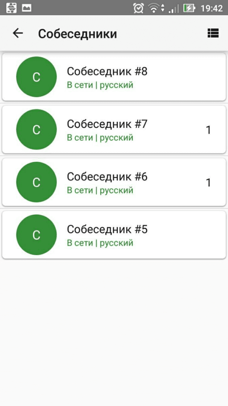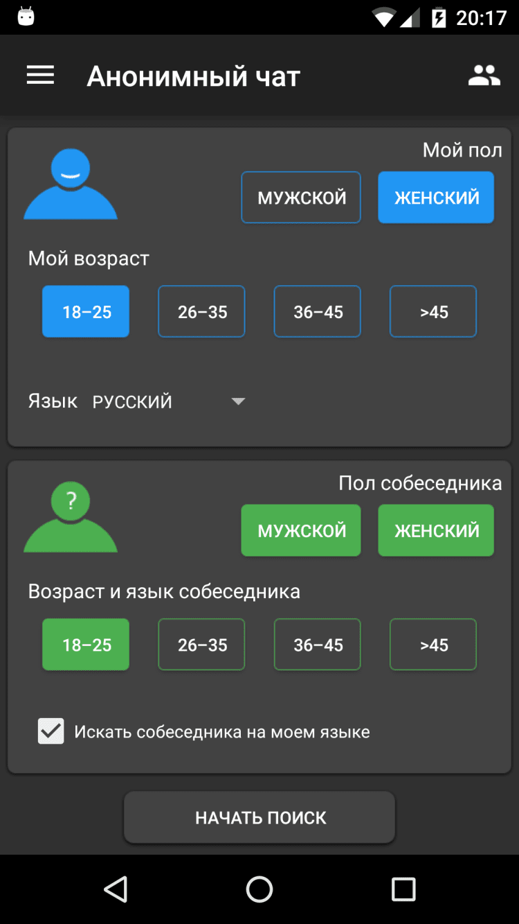 - выбор пола и возраста собеседника;