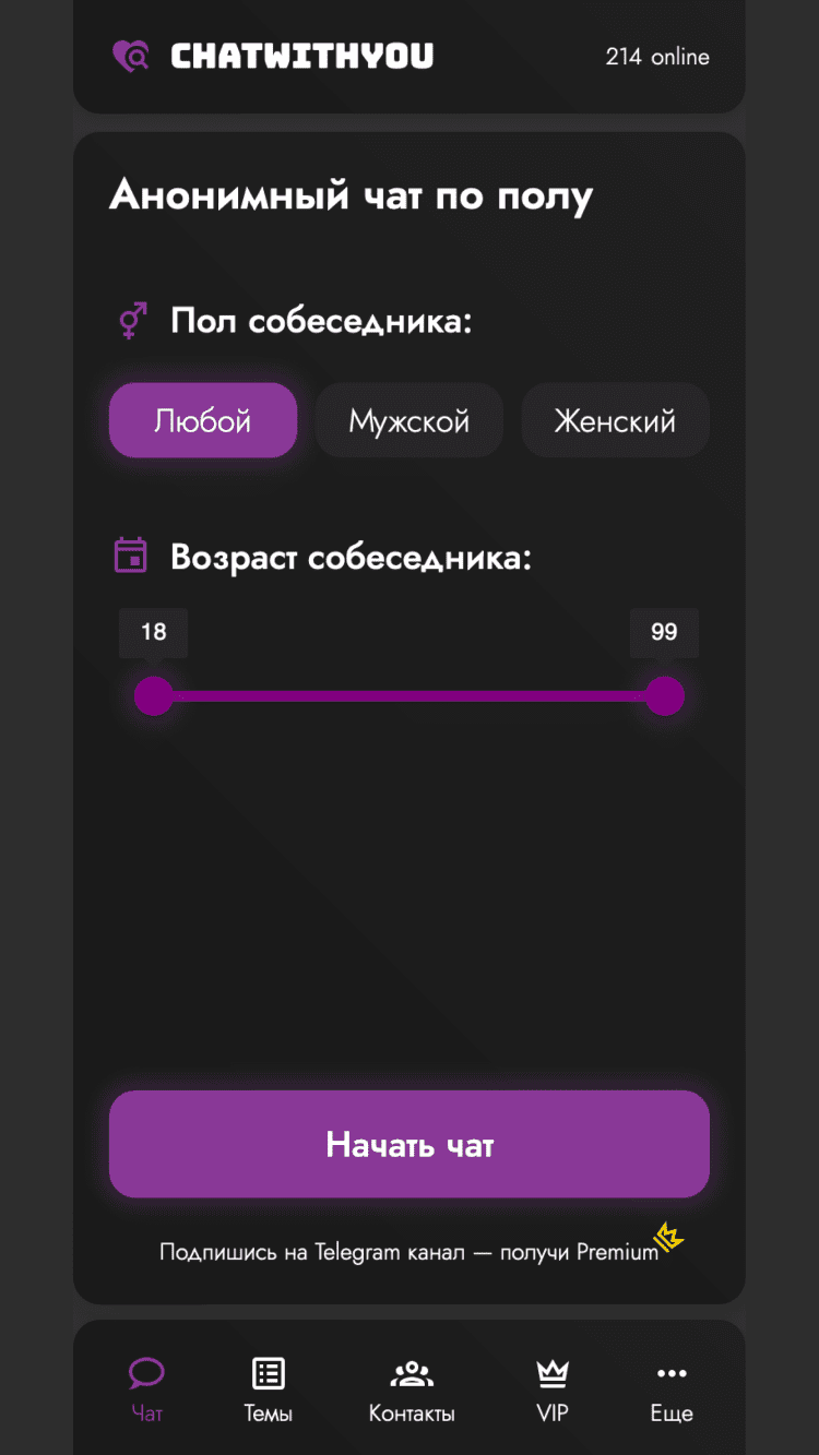 - установить фильтры по возрасту и полу для общения тет-а-тет;