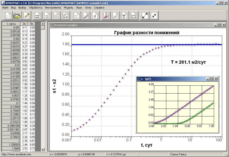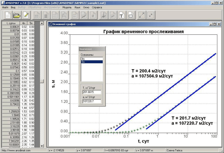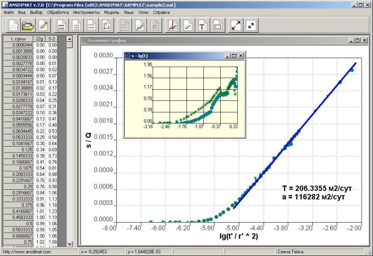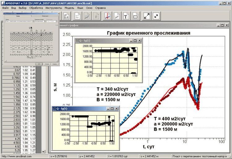 ANSDIMAT - это новый программный комплекс для аналитической и численной обработки опытно-фильтрационных опробований прямыми и обратными методами.