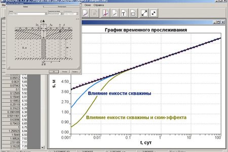 Программный комплекс включает аналитические решения, описывающие понижение в трещиновато-пористых средах различной структуры, решения для профильно- и планово-анизотропных пластов, для наклонных пластов и пластов переменной мощности. Определение фильтрационных параметров осуществляется по изменению уровня, как в основном пласте, так и в смежных хорошо и слабопроницаемых слоях. Опытная и наблюдательная скважины могут быть как совершенны по степени вскрытия, так и несовершенны. Дополнительно учитывается емкость опытной и наблюдательной скважины, скин-эффект, влияние зоны аэрации на изменение уровня. Кроме того, представлены решения для наклонных и горизонтальных скважин, для экспресс-опробований и откачек с постоянным понижением, проведенных в различных условиях. В большинстве схем учитывается влияние плановых и профильных границ. Предусмотрена возможность обработки откачек как с одной опытной скважиной, так и с несколькими. Расход каждой скважины может произвольно меняться во времени. Обработка осуществляется как по периоду понижения, так и по восстановлению уровня.