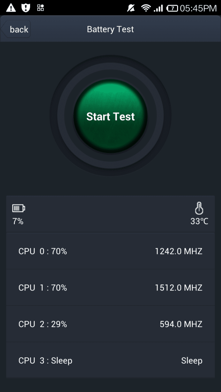 - тест батареи. Запустите его и подождите, пока приложение проанализирует уровень расхода энергии и скорость разрядки аккумулятора. Тест может занять до пяти часов;