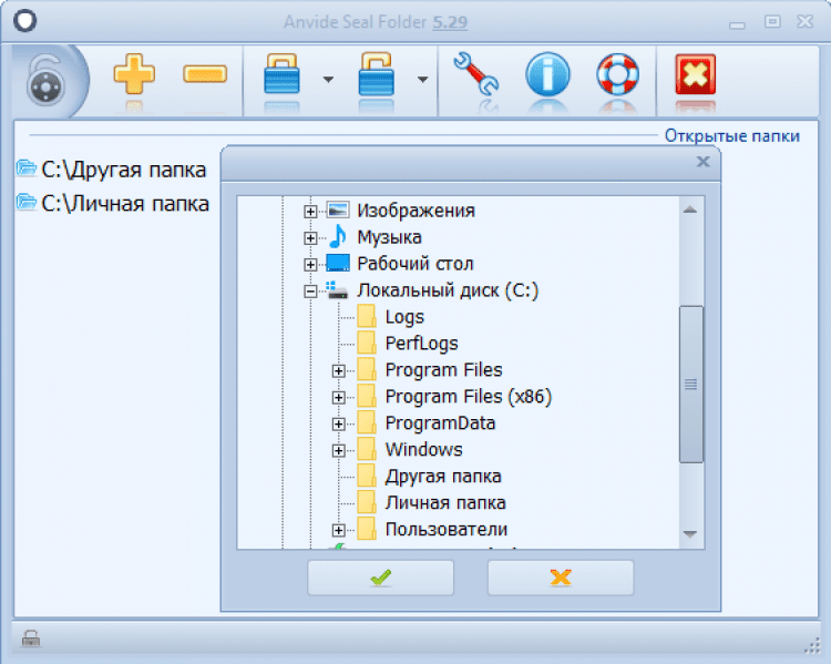 Anvide Seal Folder - это программа для защиты папок. С её помощью можно добавить нужную папку в список охраняемых объектов и поставить её в статус защищенных. После этого другие пользователи не смогут просмотреть содержимое папки.