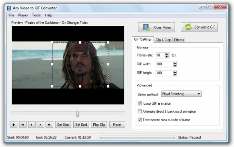Any Video to GIF Converter - это пррограмма для конвертирования фрагментов видео в анимированные GIF файлы.