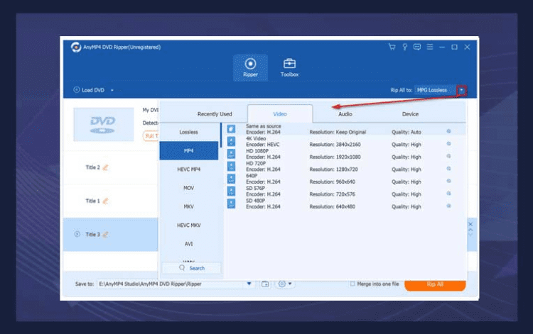 AnyMP4 DVD Ripper - это программа для создания рипов DVD дисков в формате TS, MP4, MOV, M4V, 3GP, AMV, AVI, MKV, WMV, RMVB, FLV, SWF, ASF и др. AnyMP4 DVD Ripper может похвастаться высокой скоростью копирования и высоким качеством получаемого видео.