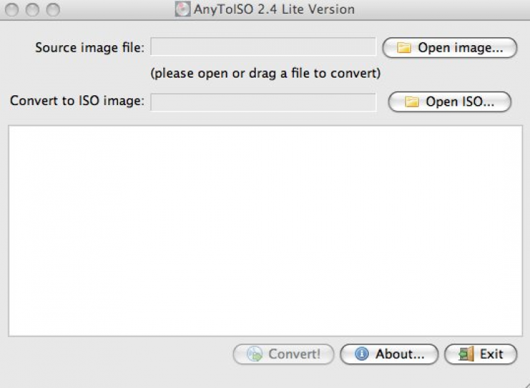 Программа для конвертирования BIN, MDF, PDI, CDI, NRG, B5I, IMG, DEBб CD/DVD-ROM образов в ISO. AnyToISO Converter так же умеет автоматически извлекать DMG-файл для создания образа. Интерфейс программы весьма прост и позволяет выбрать только путь к исходному и конечному файлу. Больше от вас никаких настроек не потребуется.