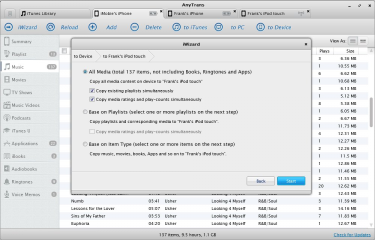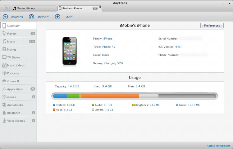 AnyTrans - это программа, предназначенная для передачи музыки, видео, приложений и других файлов с компьютера на iPhone, iPod или iPad, и наоборот. Она так же позволяет клонировать устройства, с целью переноса данных, например, со старого iPhone на новый, и выполнять целый ряд других операций, недоступных в iTunes.