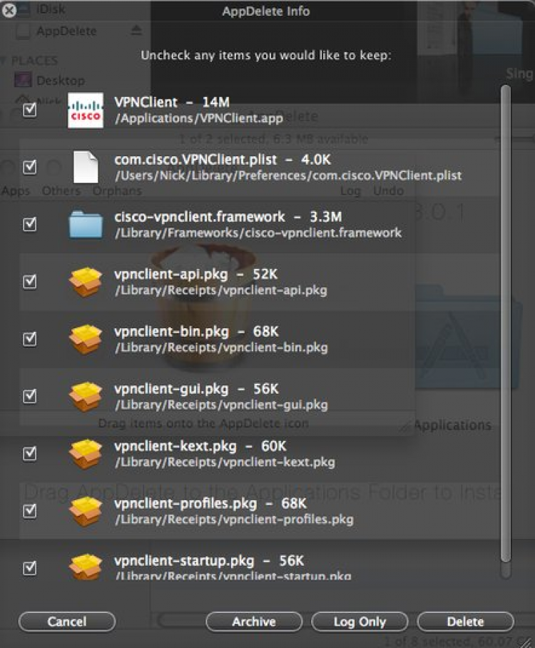- Можно перетаскивать папки на AppDelete, чтобы найти внутри объекты для удаления