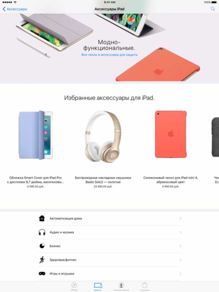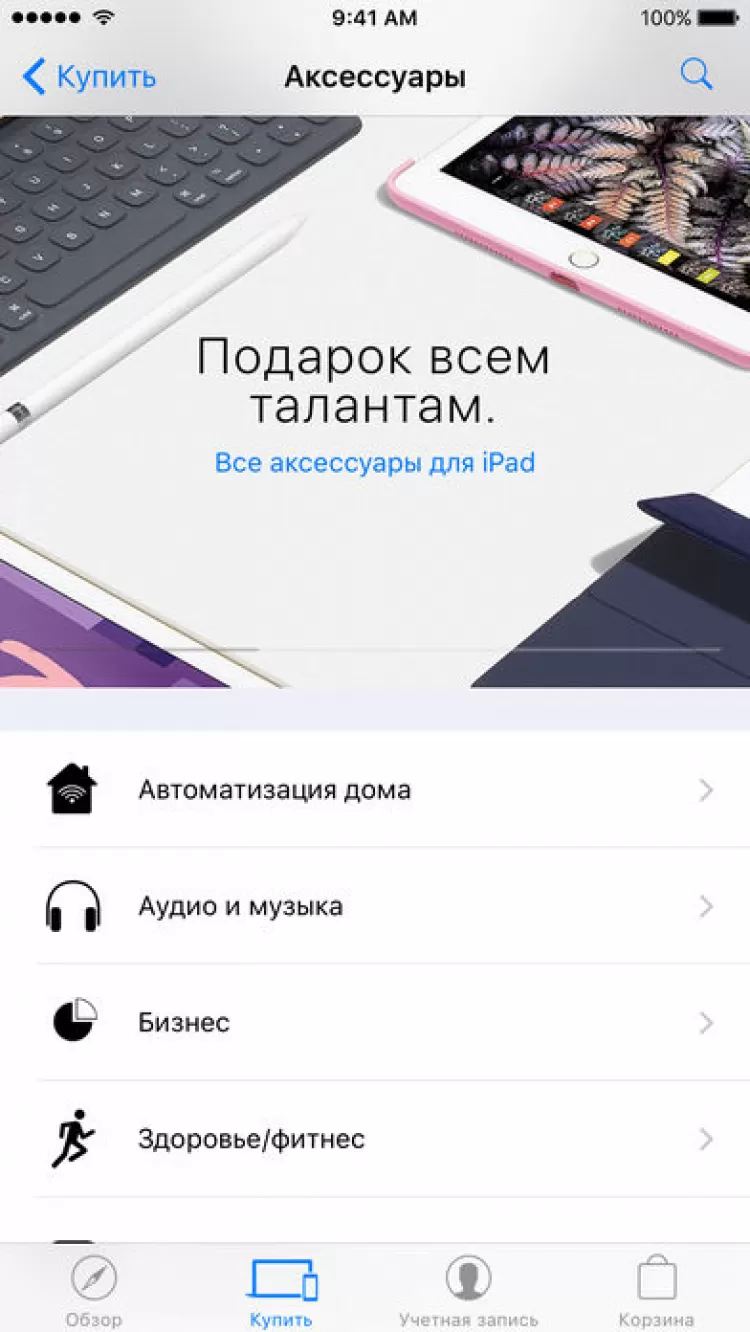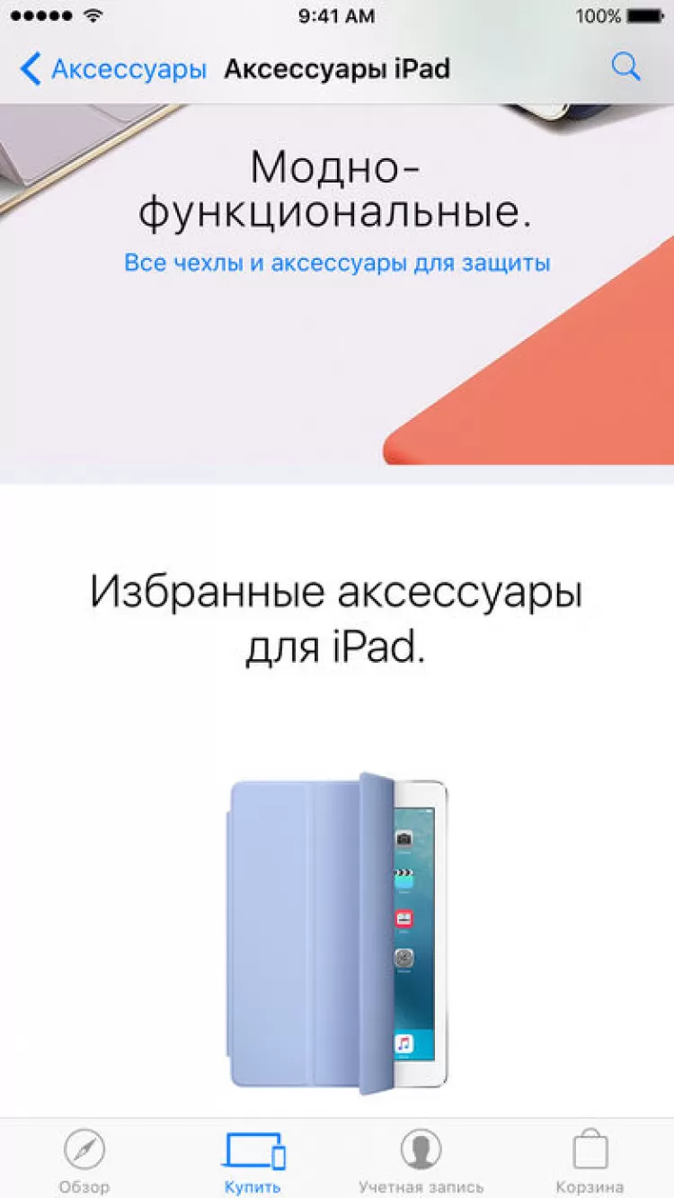 Приложение Apple Store. Сэкономьте свое время и заказывайте нужные вам товары и аксессуары от Apple не выходя из дома в любой удобный момент.