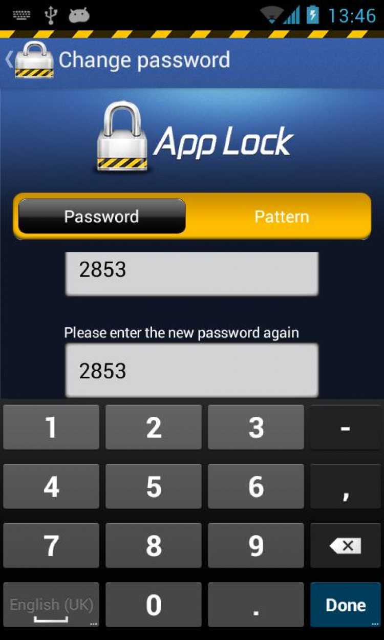 - приложение позволяет устанавливать защиту приложений с использованием пароля двух видов;