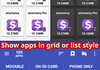 - отображение размера кэша для каждого приложения;