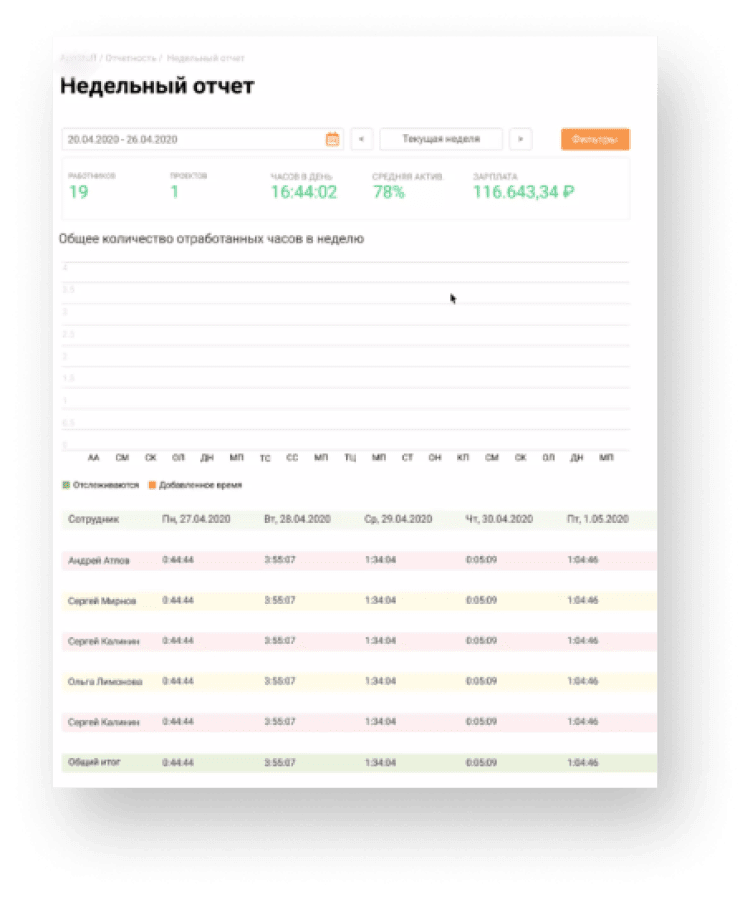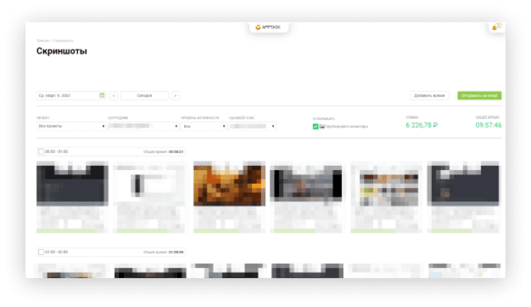 - Система мониторинга работы сотрудников, позволяет просматривать снимки экранов рабочего стола сотрудников, отслеживания активности, потраченное время конкретным сотрудником на выбранную задачу, отслеживать затраты компании на текущую задачу в моменте времени