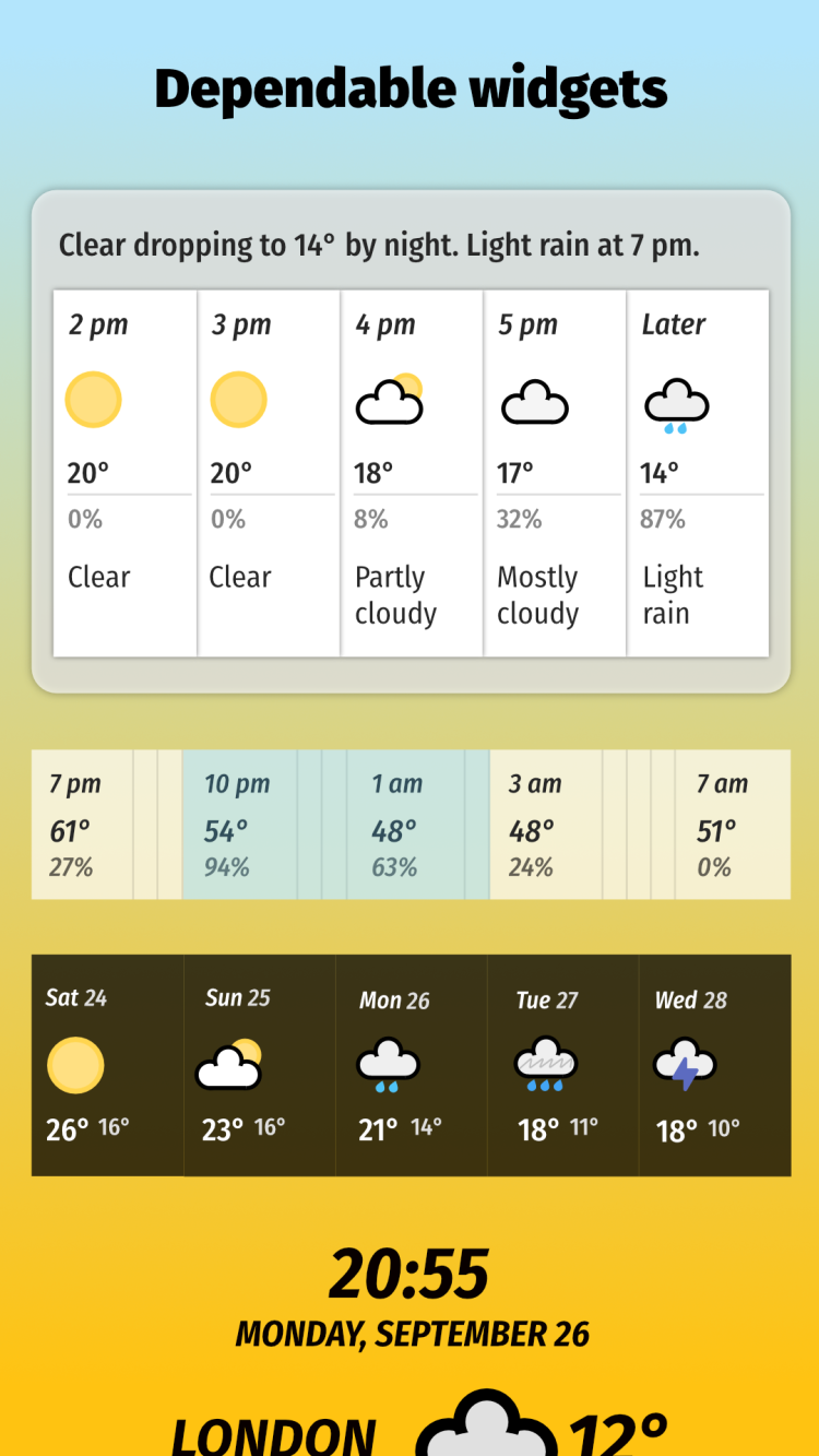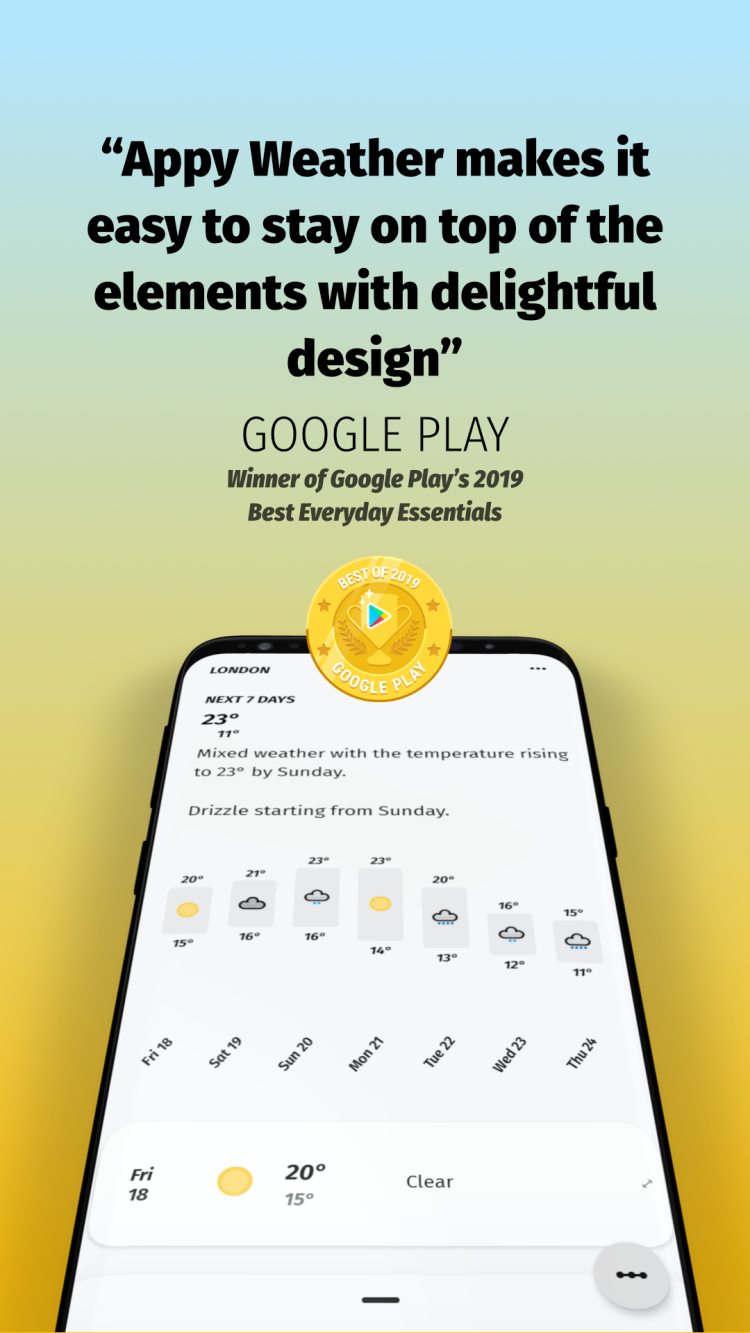 Appy Weather — отличное приложение для тех, кому нужна точная информация о погоде. Здесь вы можете получить сведения о текущих погодных условиях и прогноз в любое время дня и ночи, просто взглянув на экран смартфона.